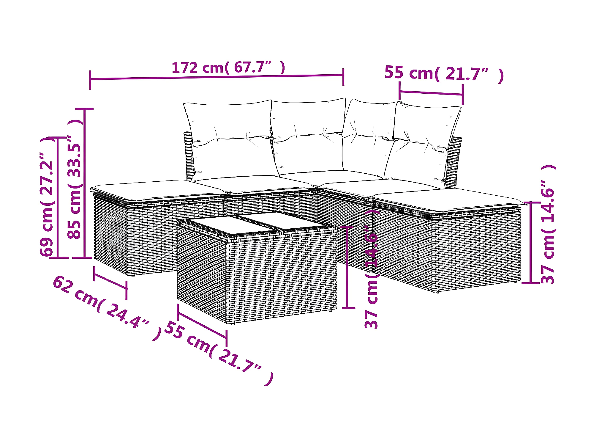 Salon de jardin 6 pcs avec coussins noir résine tressée