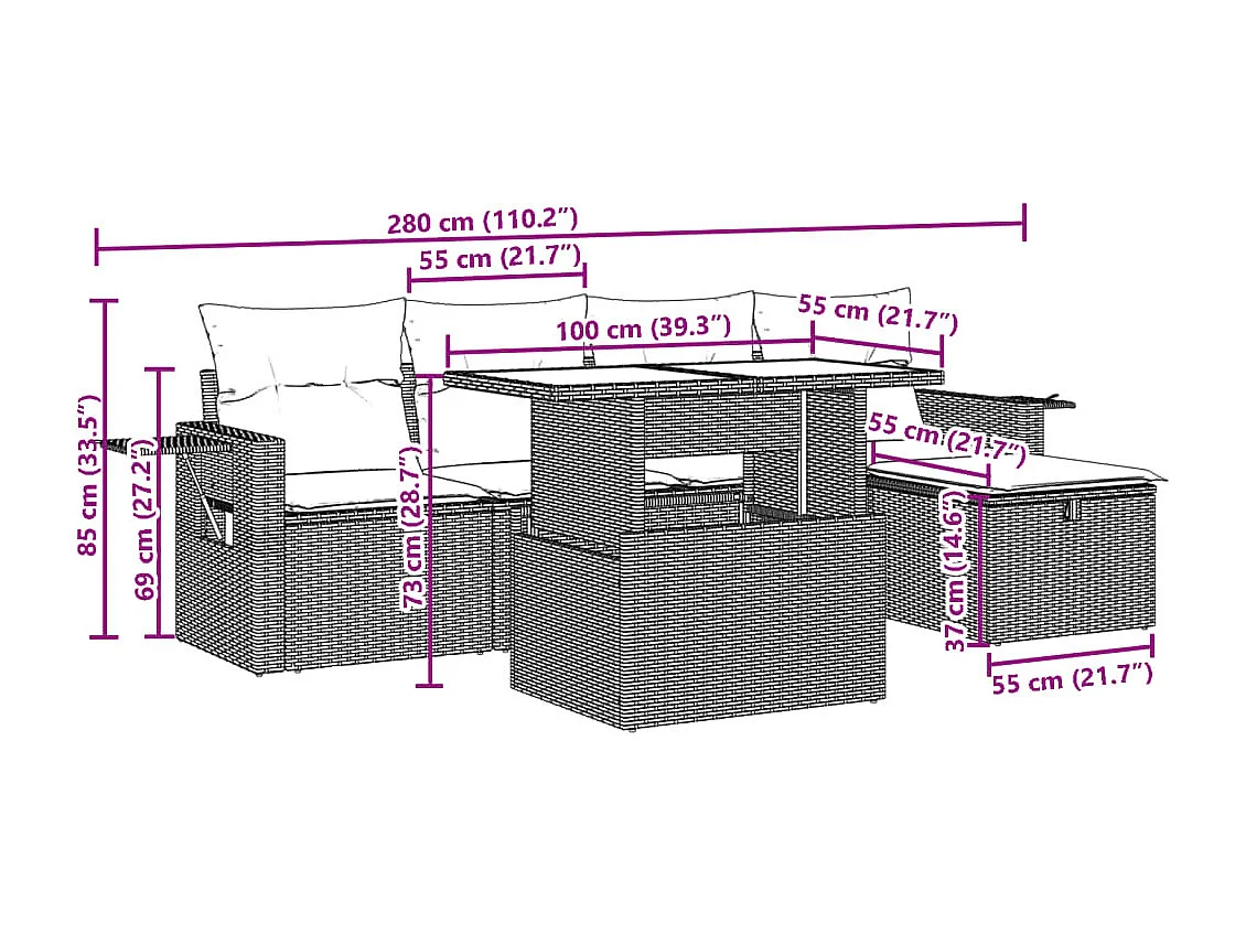Salon de jardin 6 pcs avec coussins noir résine tressée