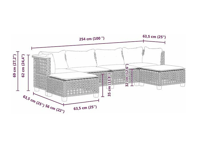 Salon de jardin 6 pcs avec coussins noir résine tressée