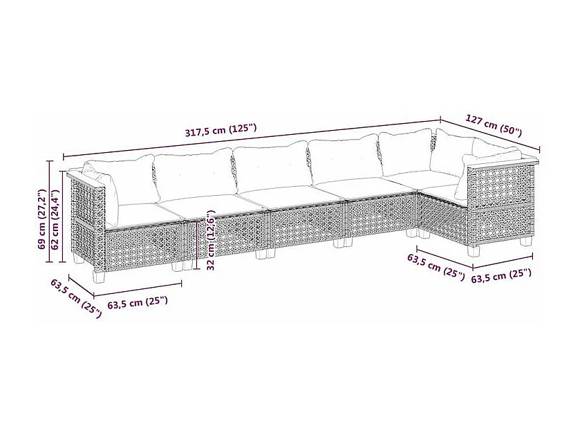 Salon de jardin 6 pcs avec coussins noir résine tressée