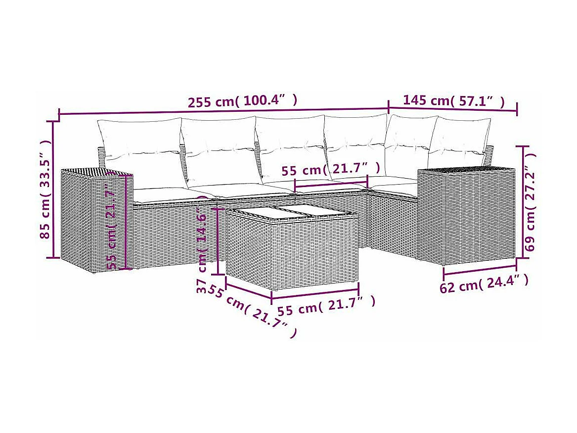 Salon de jardin 6 pcs avec coussins noir résine tressée