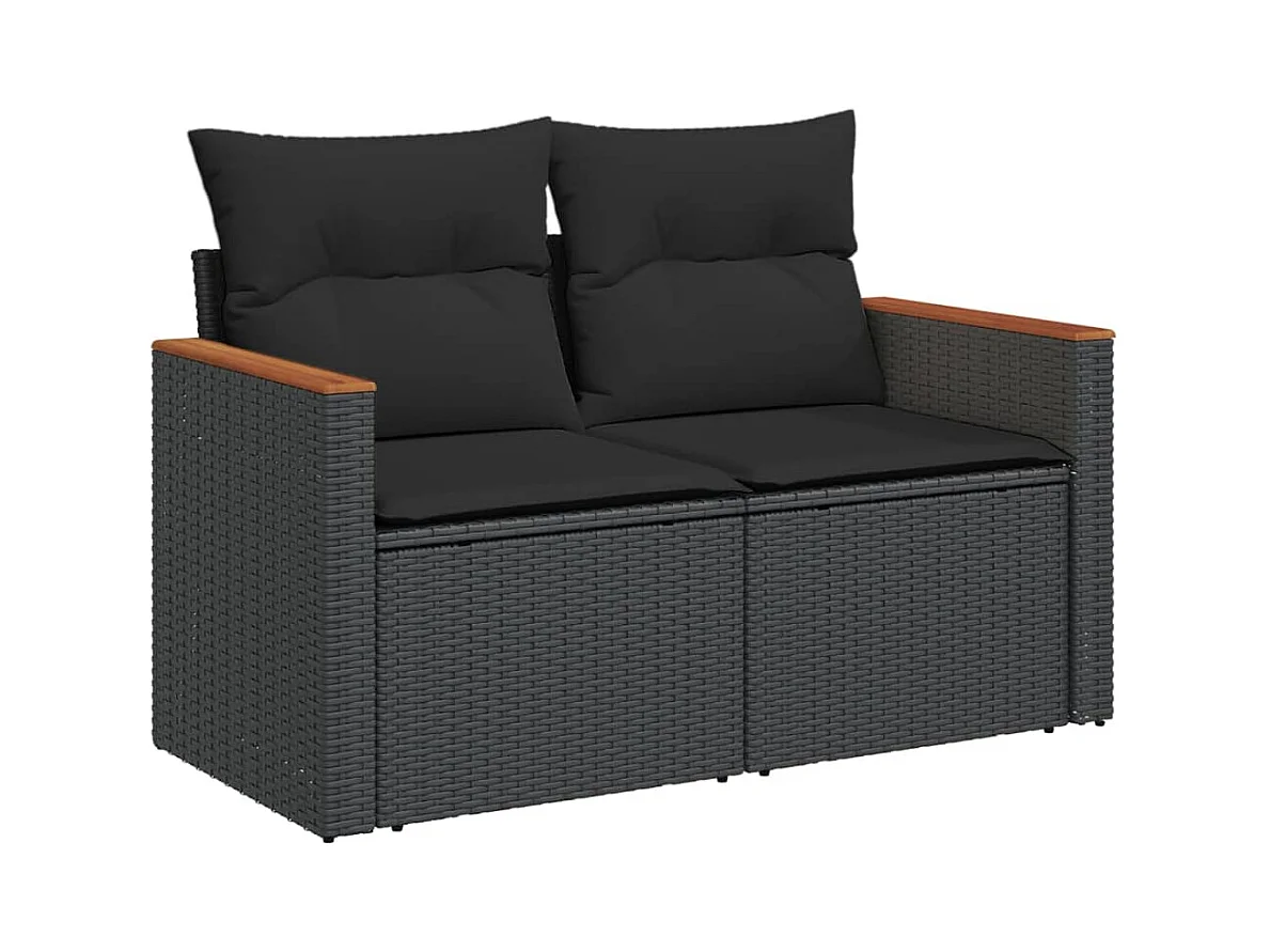 Salon de jardin 6 pcs avec coussins noir résine tressée