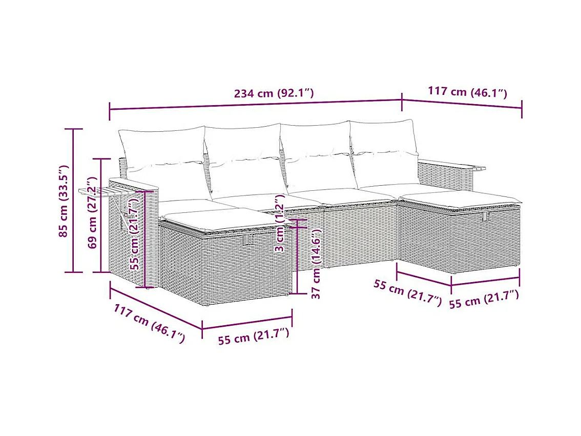 Salon de jardin 6 pcs avec coussins noir résine tressée