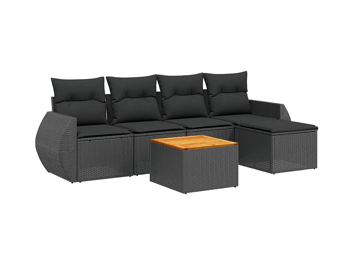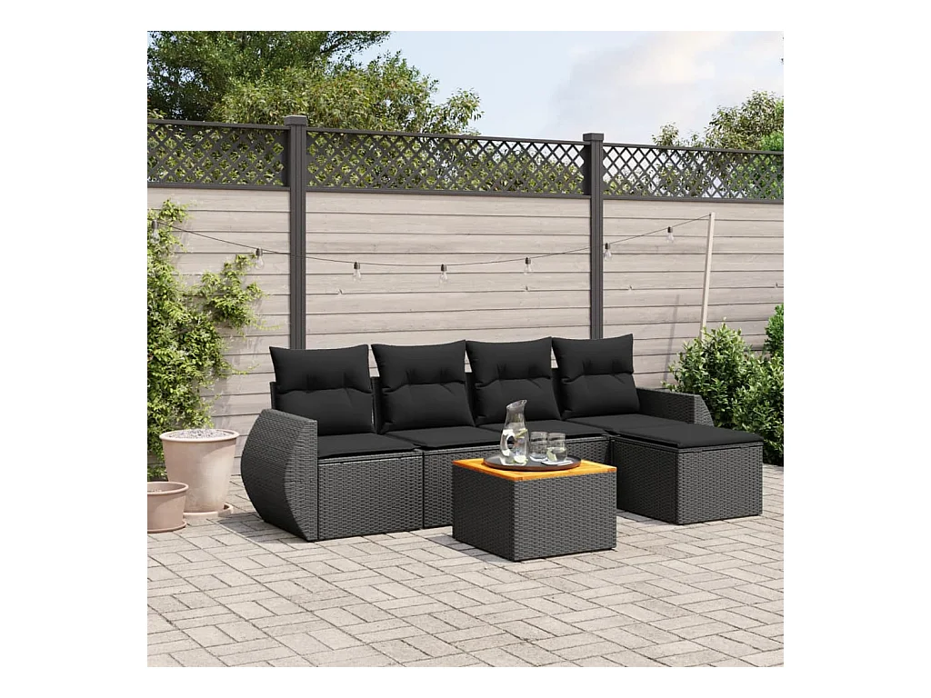 Salon de jardin 6 pcs avec coussins noir résine tressée