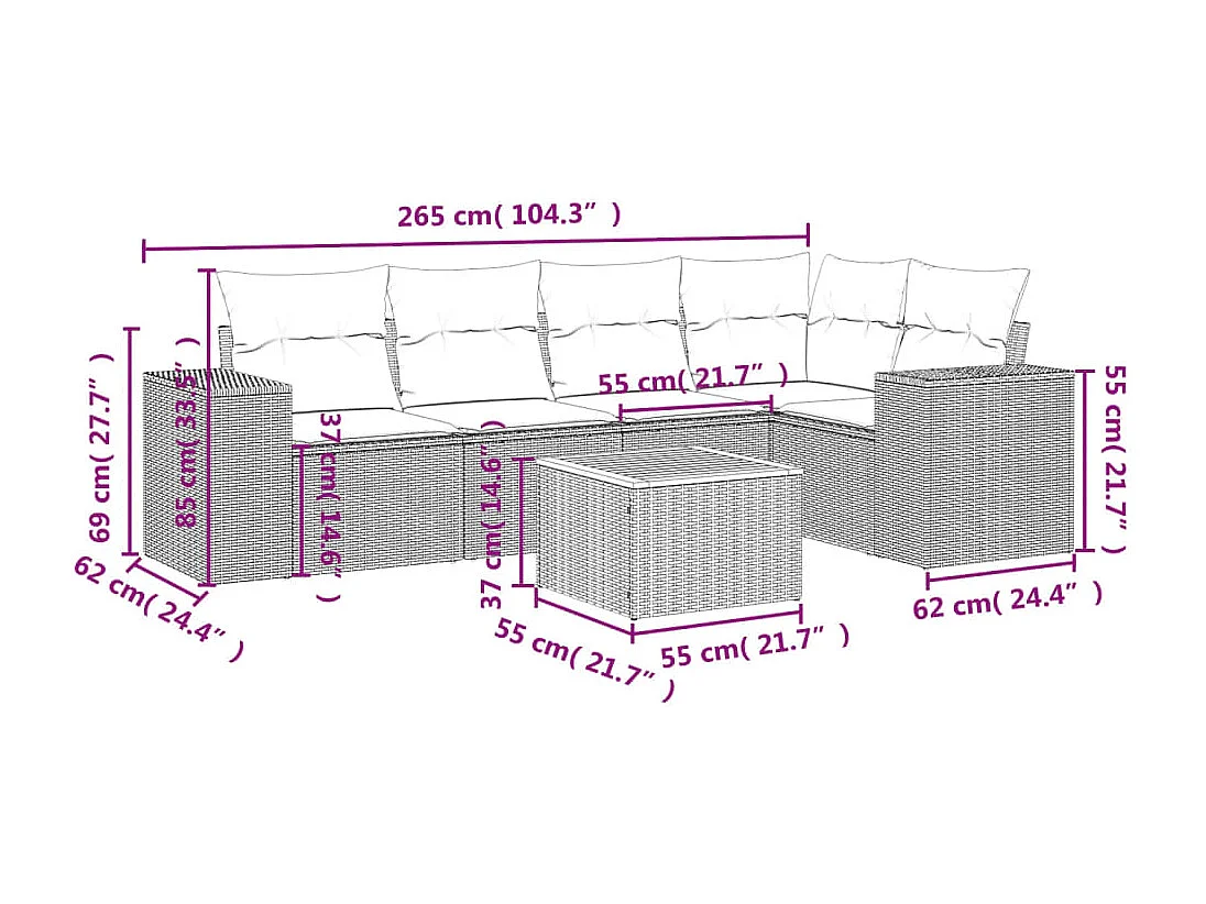 Salon de jardin 6 pcs avec coussins noir résine tressée