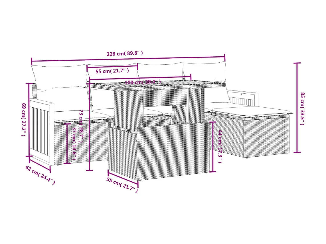 Salon de jardin 6 pcs avec coussins noir résine tressée