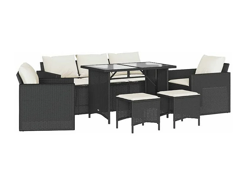 Salon de jardin 6 pcs avec coussins noir résine tressée