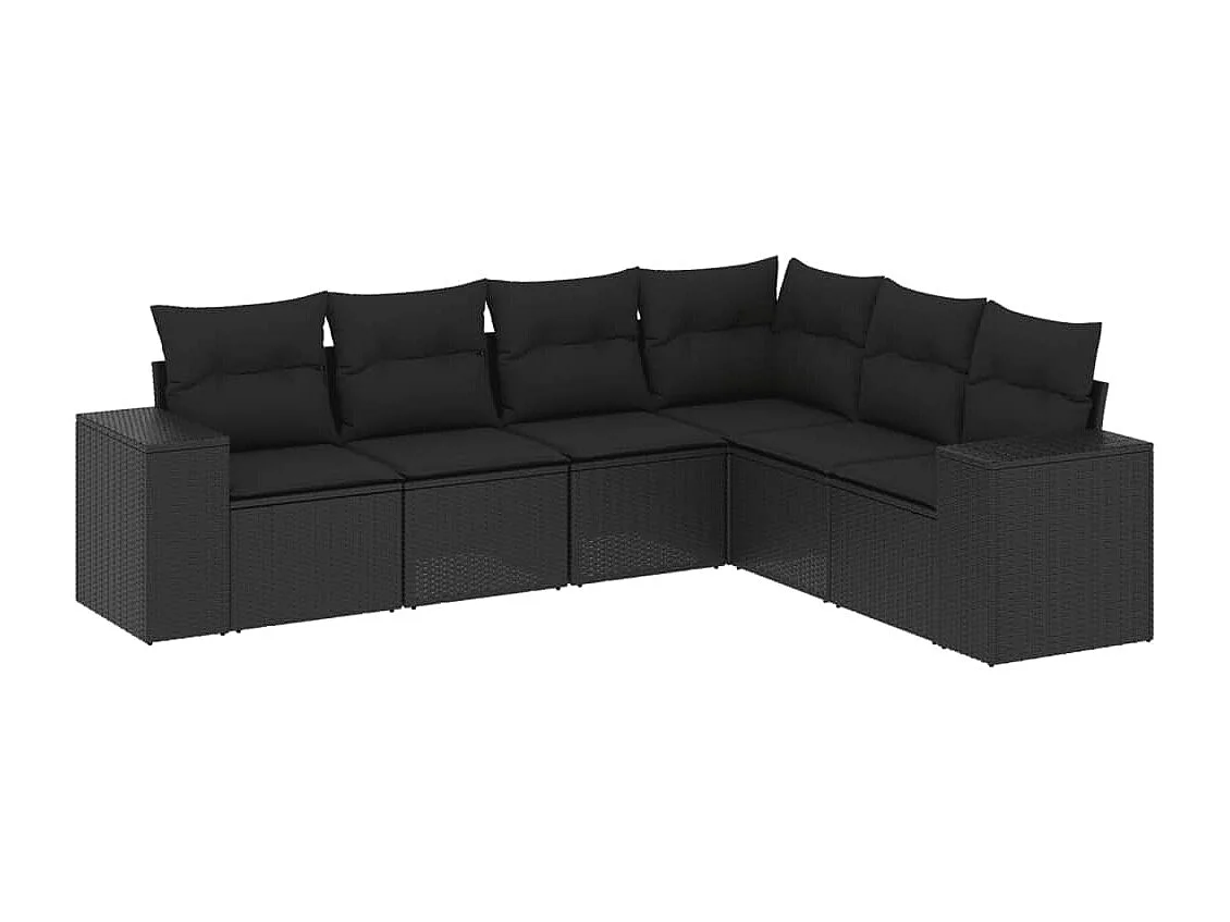 Salon de jardin 6 pcs avec coussins noir résine tressée