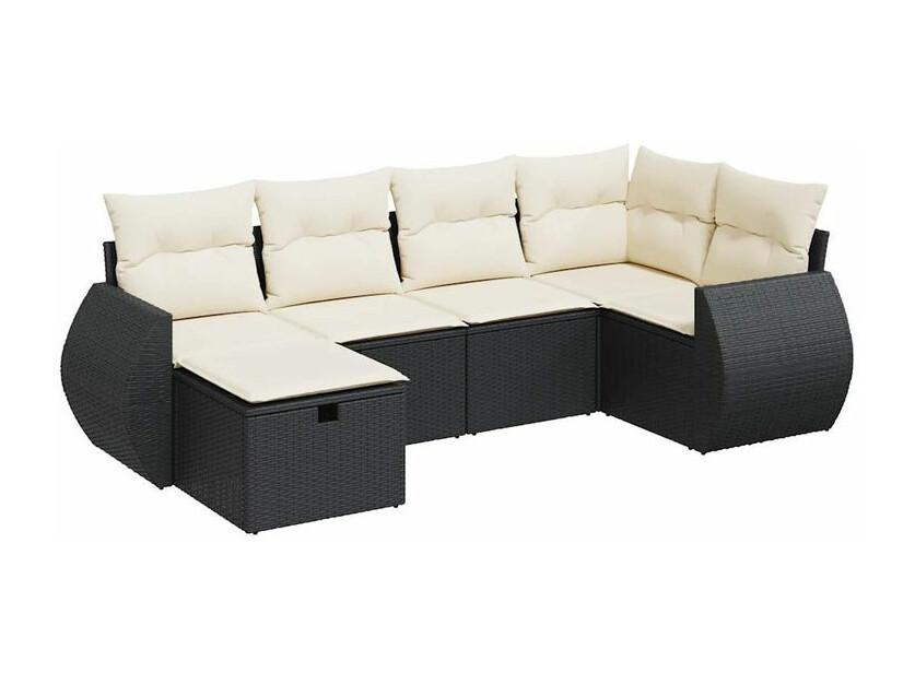 Salon de jardin 6 pcs avec coussins noir résine tressée
