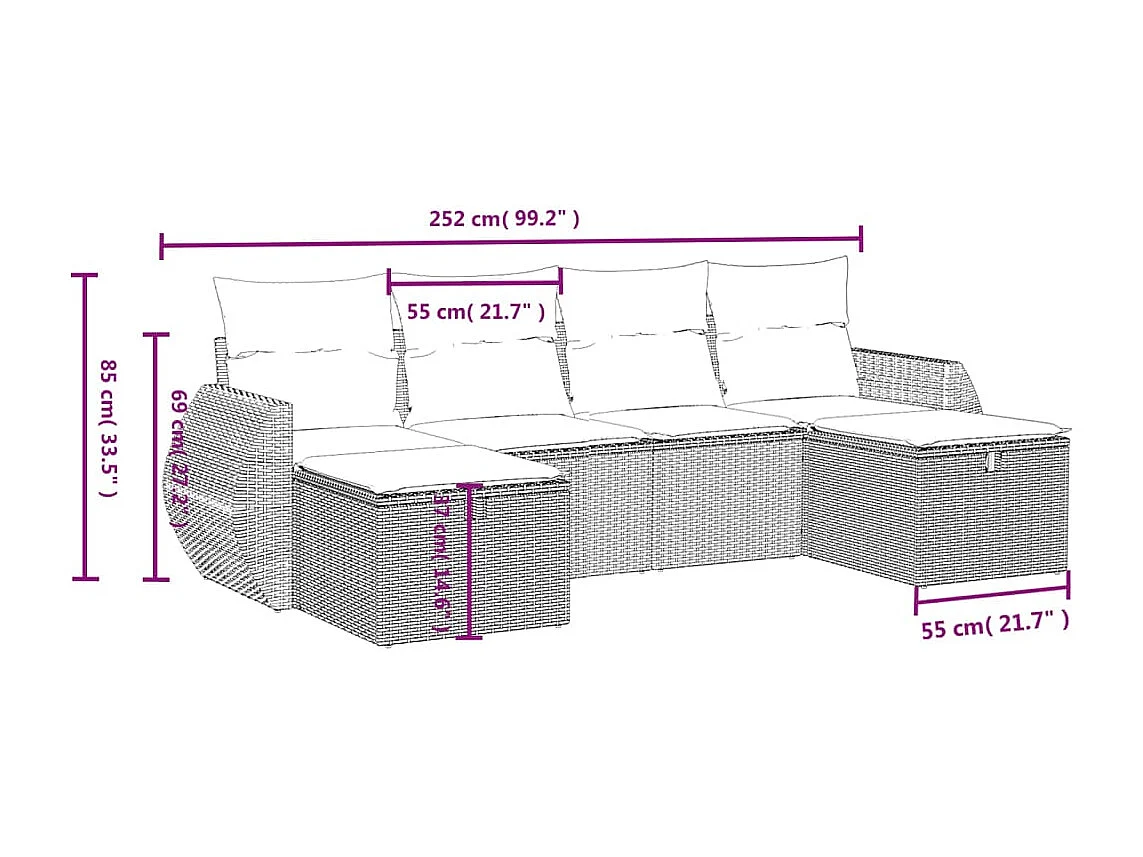 Salon de jardin 6 pcs avec coussins noir résine tressée