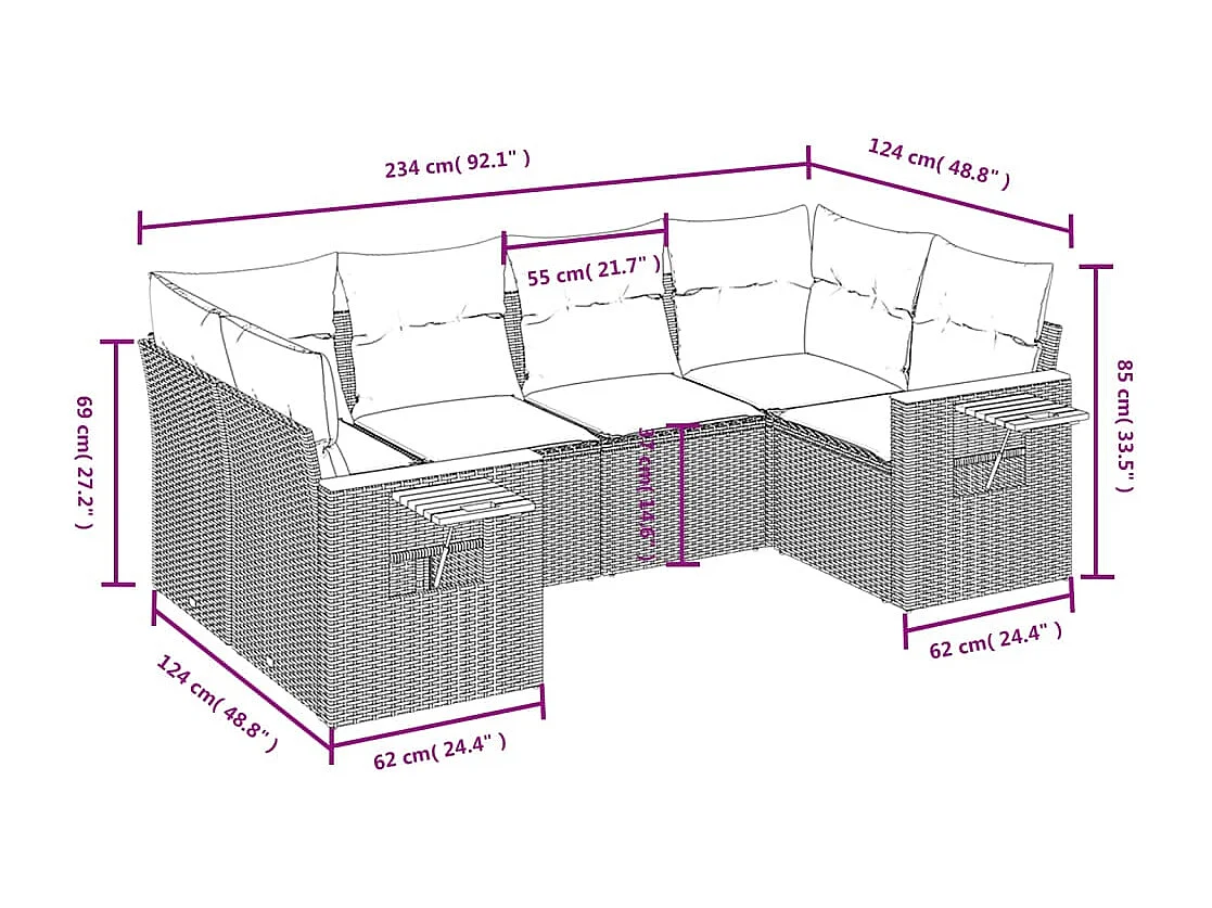 Salon de jardin 6 pcs avec coussins noir résine tressée