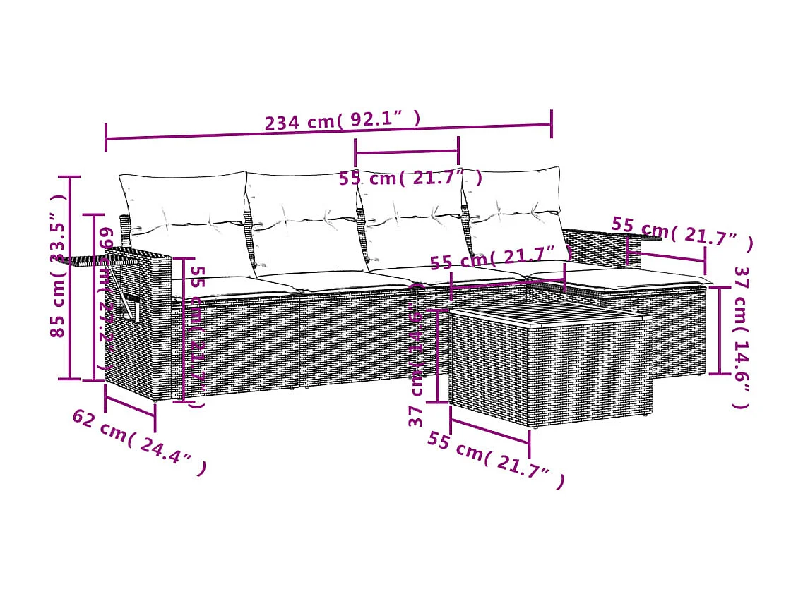 Salon de jardin 6 pcs avec coussins noir résine tressée