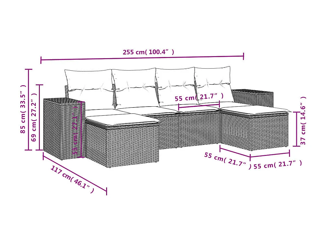 Salon de jardin 6 pcs avec coussins noir résine tressée