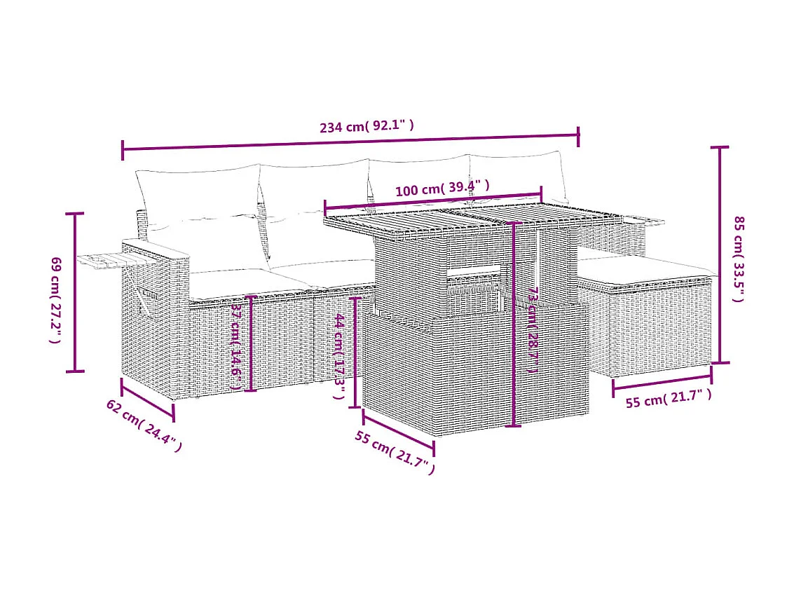 Salon de jardin 6 pcs avec coussins noir résine tressée