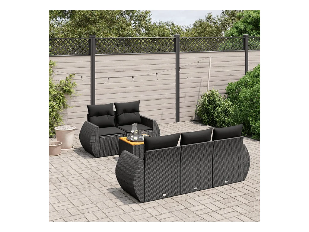 Salon de jardin 6 pcs avec coussins noir résine tressée