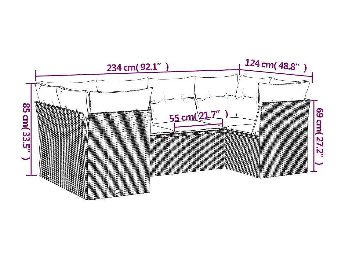 Salon de jardin 6 pcs avec coussins noir résine tressée