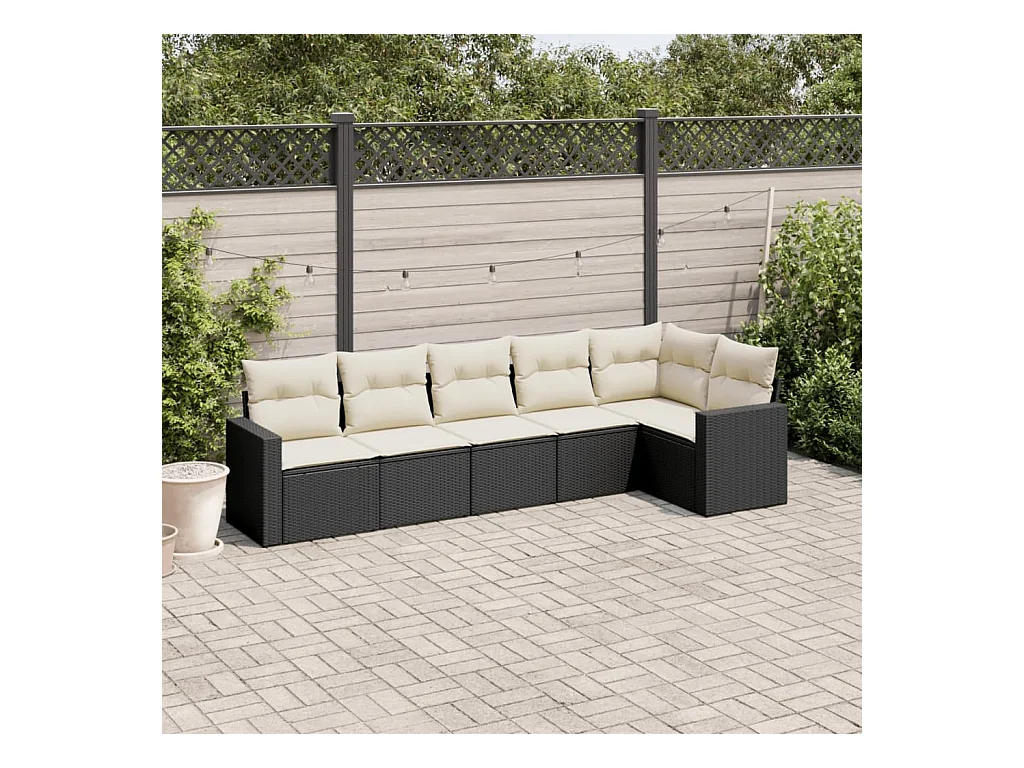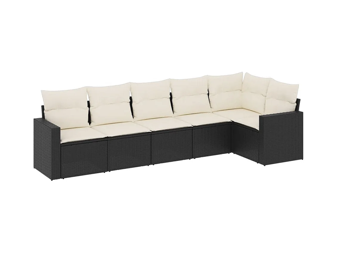 Salon de jardin 6 pcs avec coussins noir résine tressée FR45332