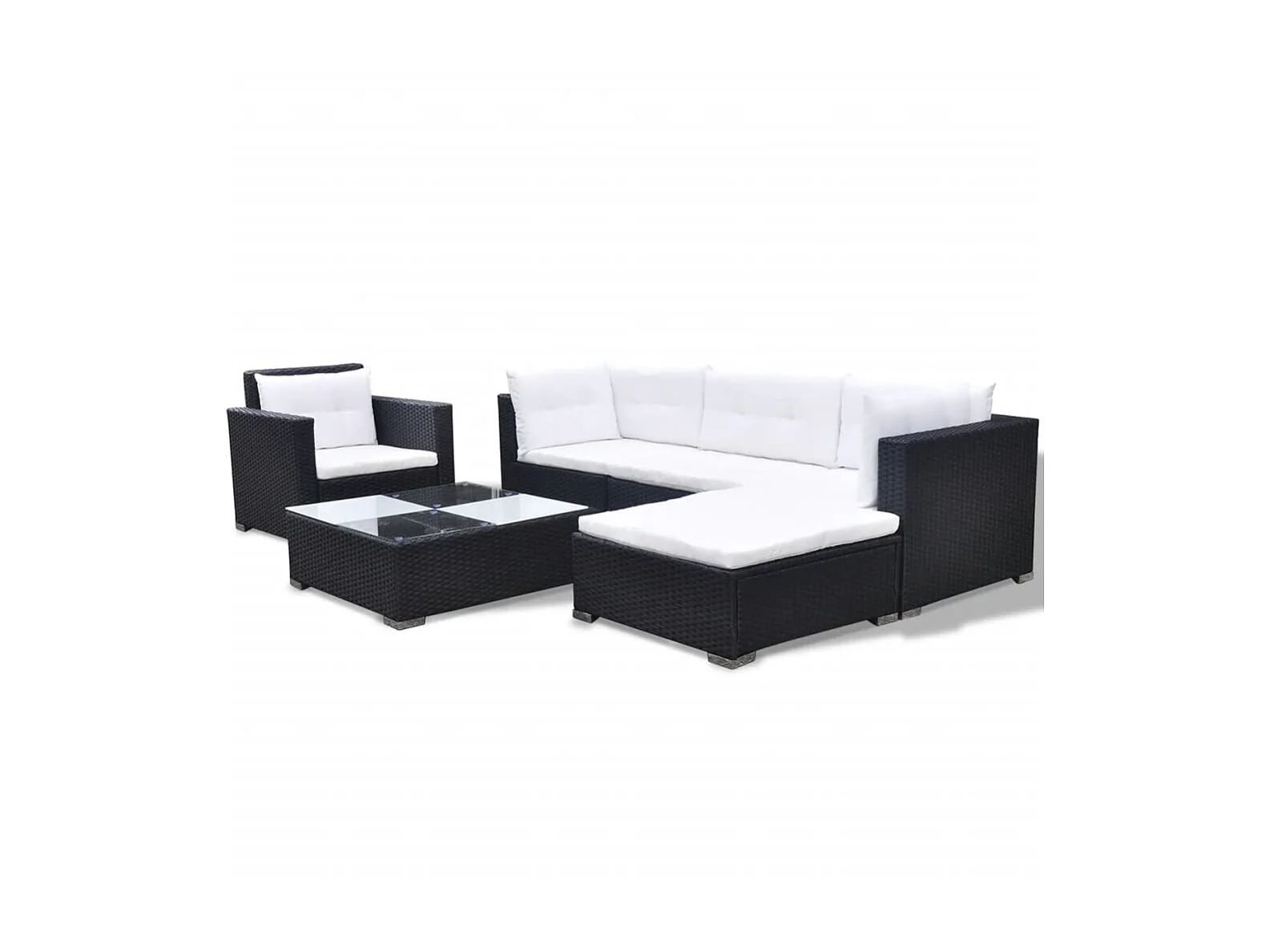 Salon de jardin 6 pcs avec coussins Résine tressée Noir 12