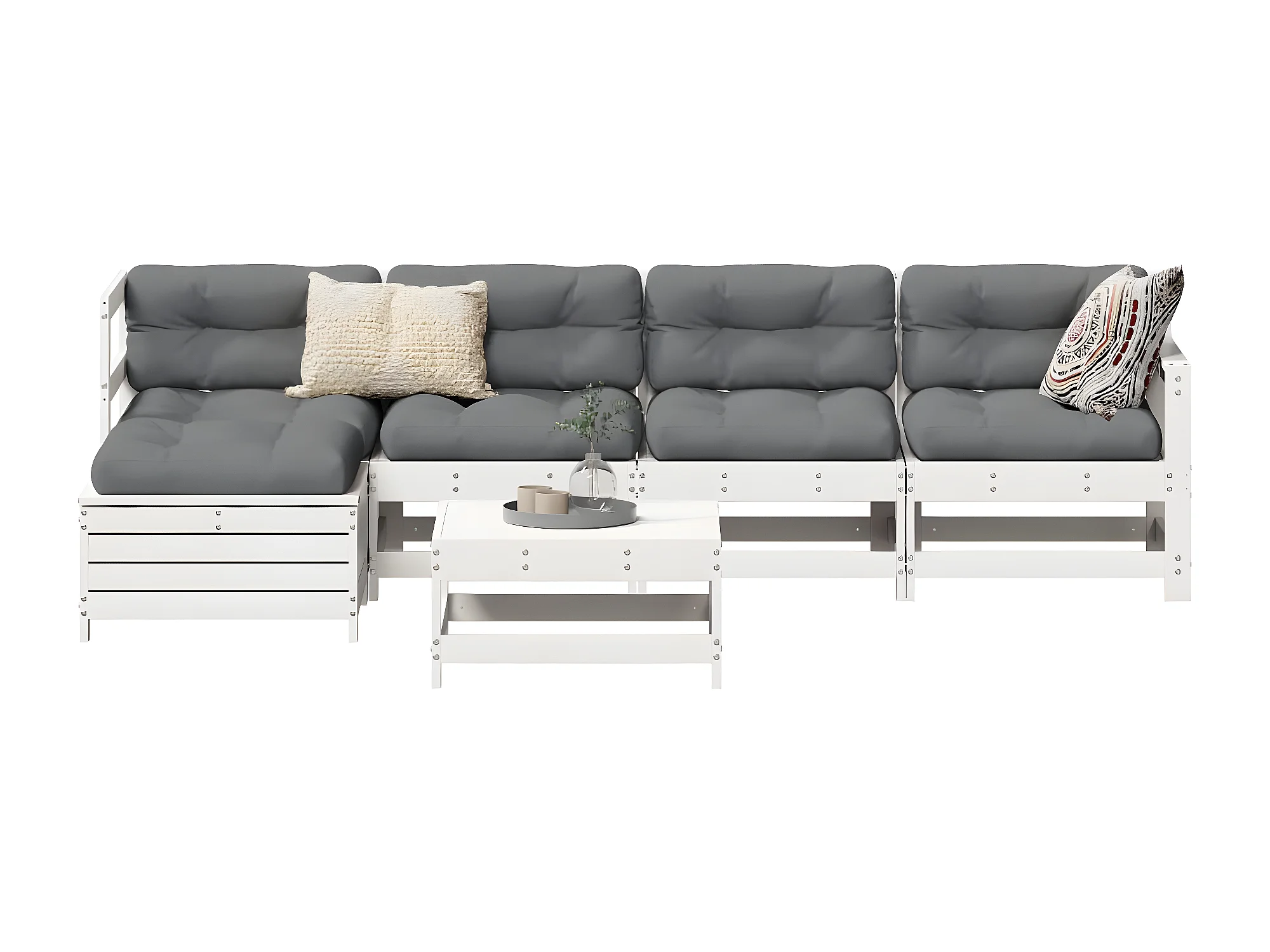 Salon de jardin 6 pcs blanc bois de pin massif