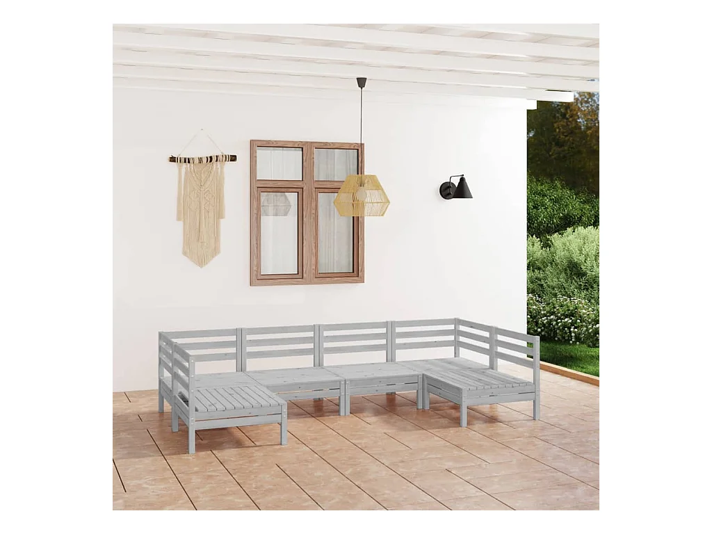 Salon de jardin 6 pcs Blanc Bois de pin massif BE29372