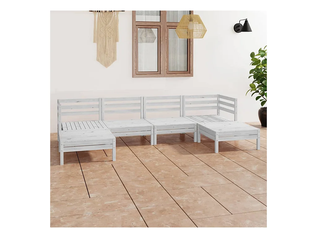 Salon de jardin 6 pcs Blanc Bois de pin massif BE60689