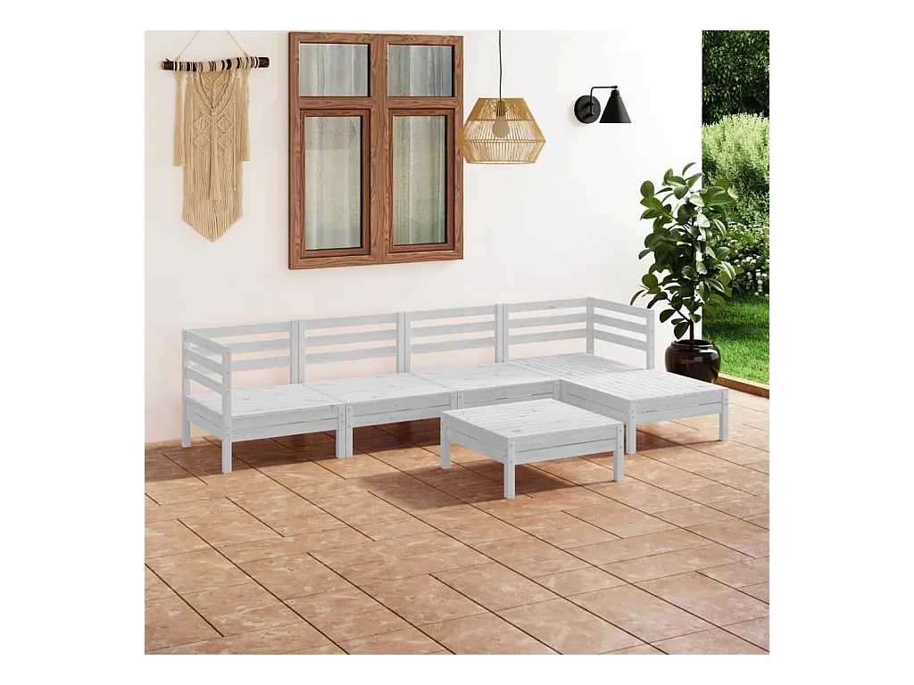 Salon de jardin 6 pcs Bois de pin massif Blanc BE17985