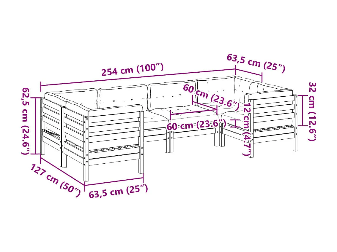 Salon de jardin 6 pcs et coussins bois massif sapin de douglas