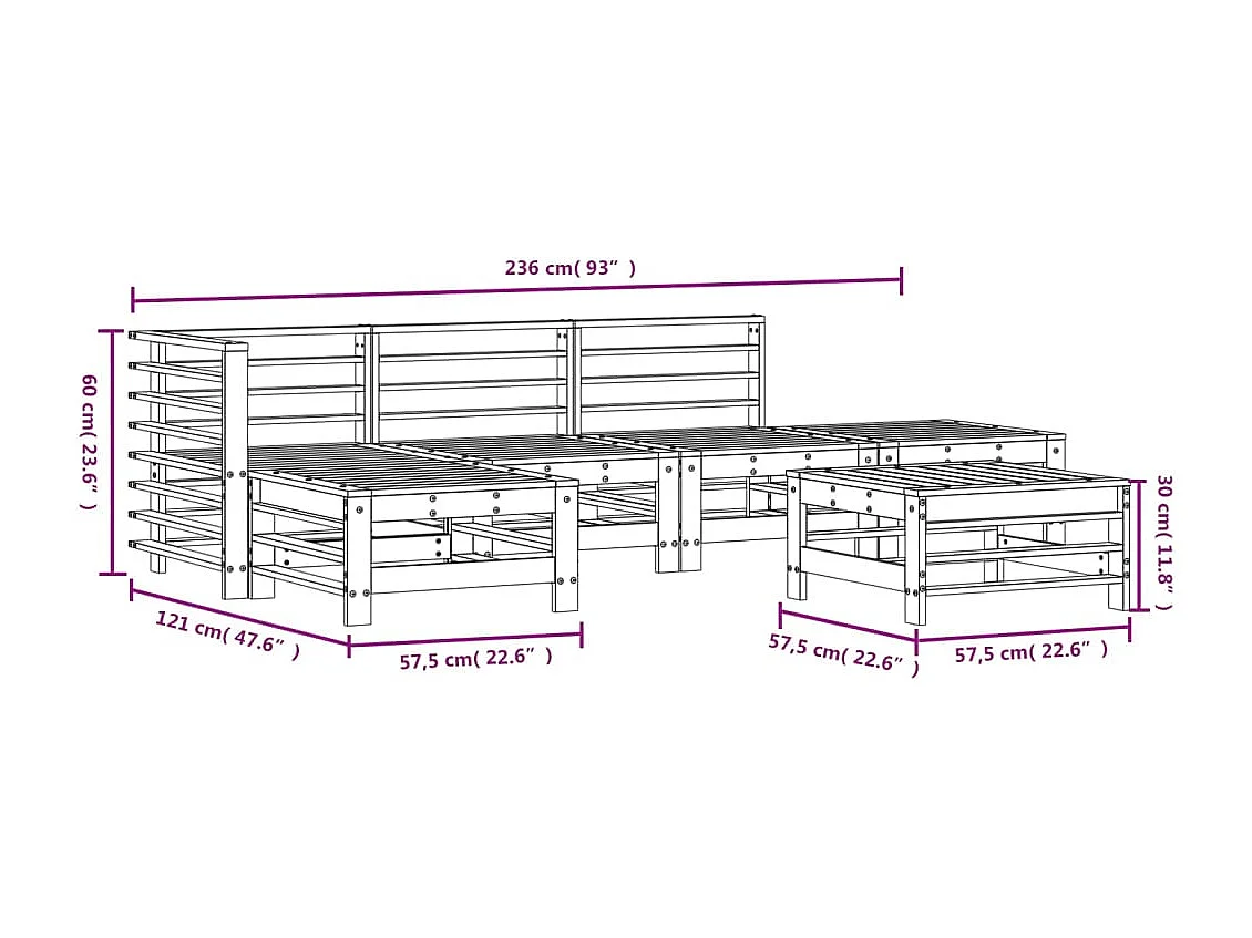Salon de jardin 6 pcs Gris Bois de pin massif
