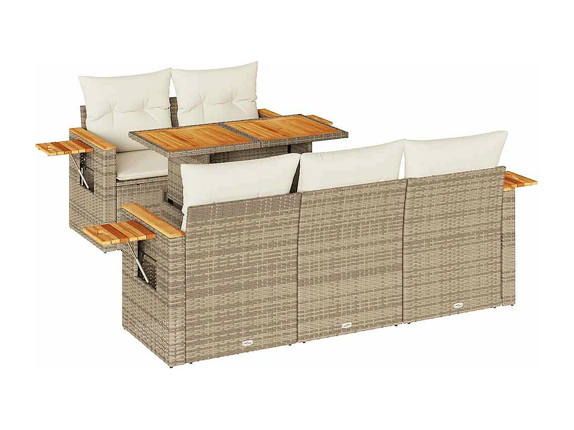 Salon de jardin 6 pièces avec coussins beige résine tressée acacia