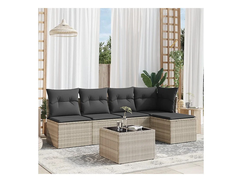 Salon de jardin 6 pièces avec coussins gris clair résine tressée