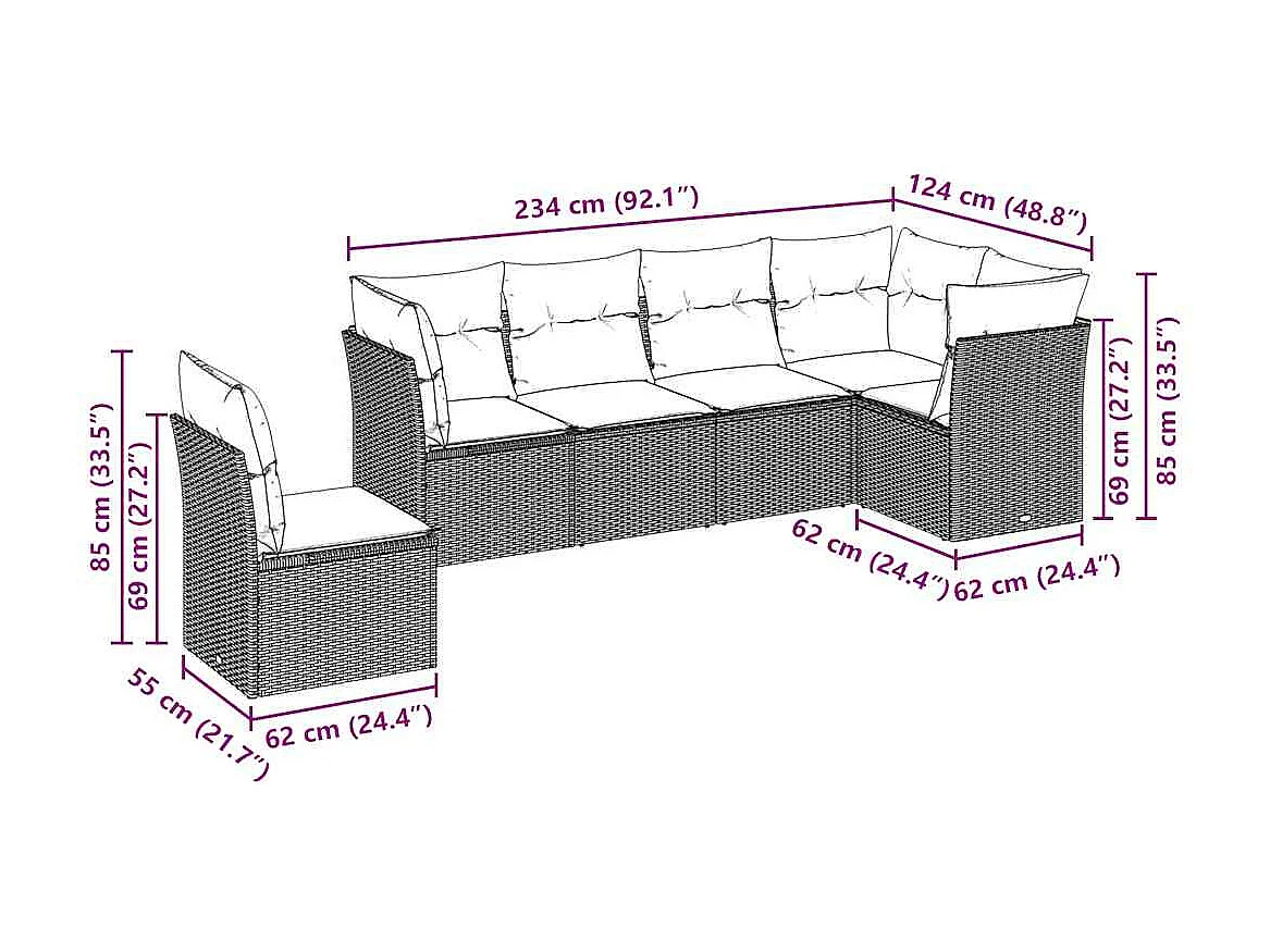 Salon de jardin 6 pièces avec coussins gris clair résine tressée