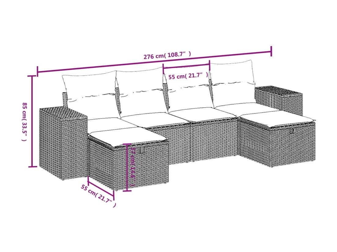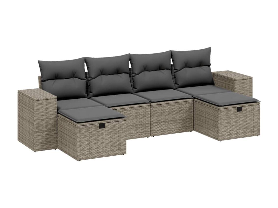 Salon de jardin 6 pièces avec coussins gris clair résine tressée