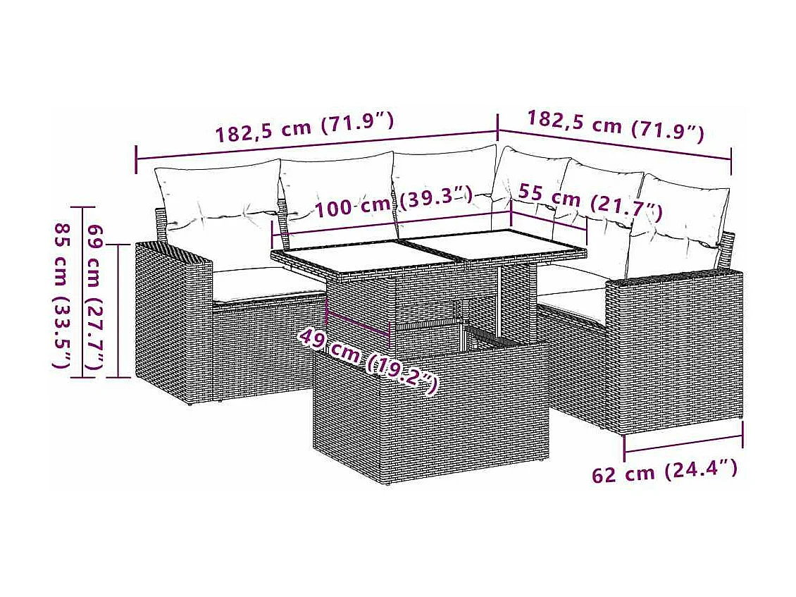 Salon de jardin 6 pièces avec coussins gris clair résine tressée