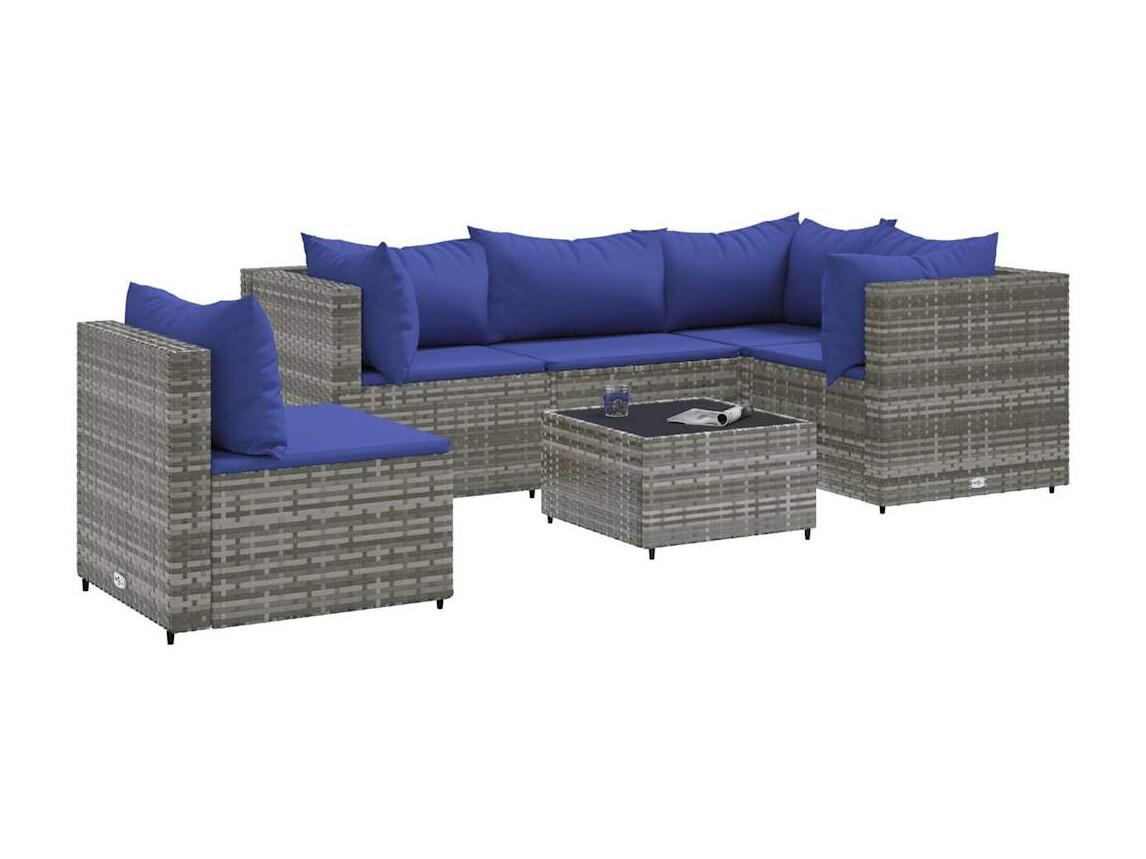 Salon de jardin 6 pièces avec coussins Gris Résine tressée