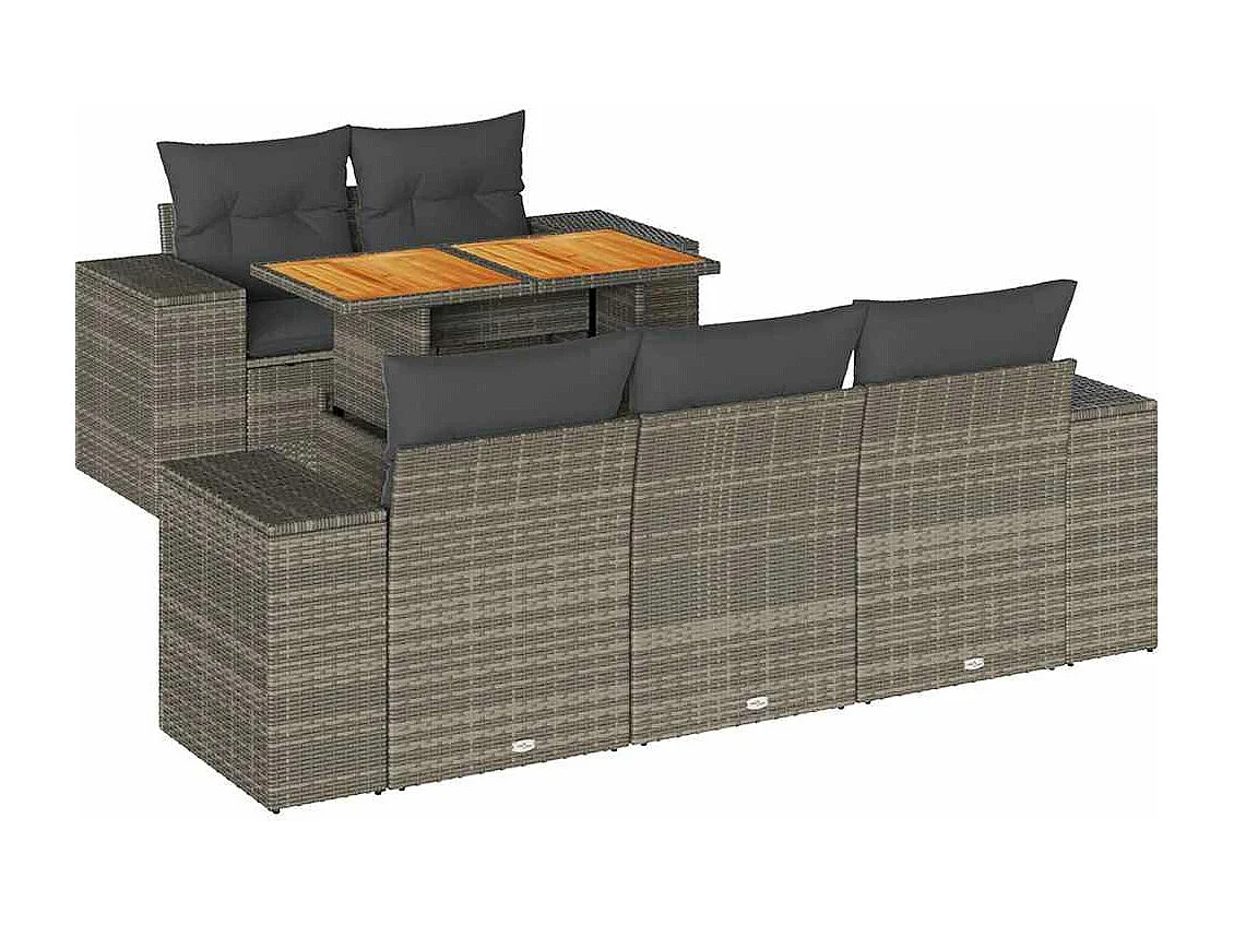 Salon de jardin 6 pièces avec coussins gris résine tressée