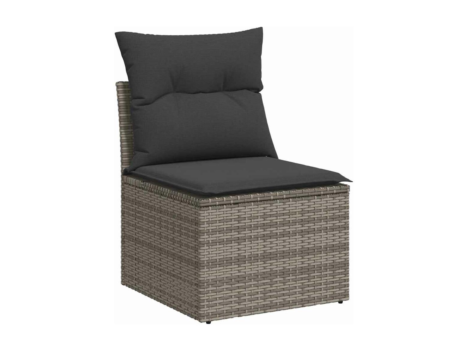 Salon de jardin 6 pièces avec coussins gris résine tressée
