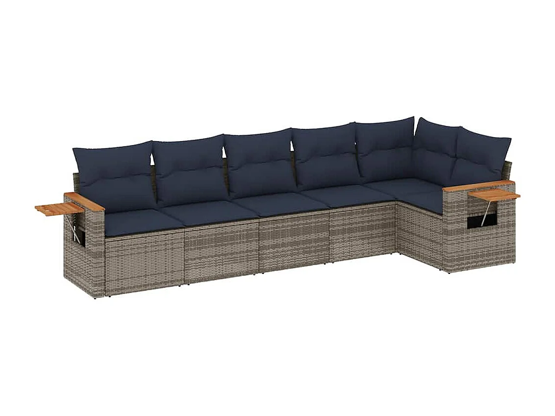 Salon de jardin 6 pièces avec coussins gris résine tressée
