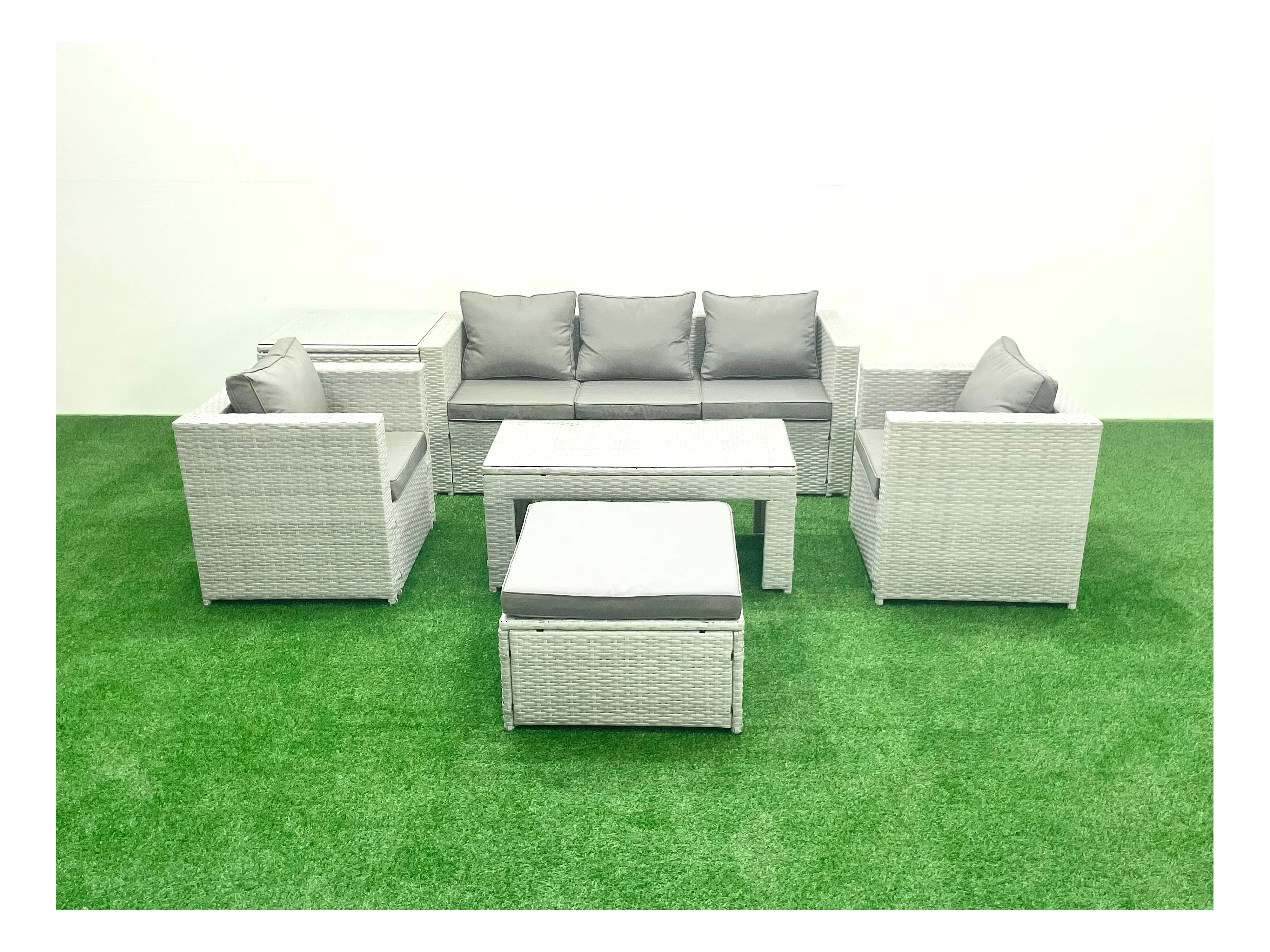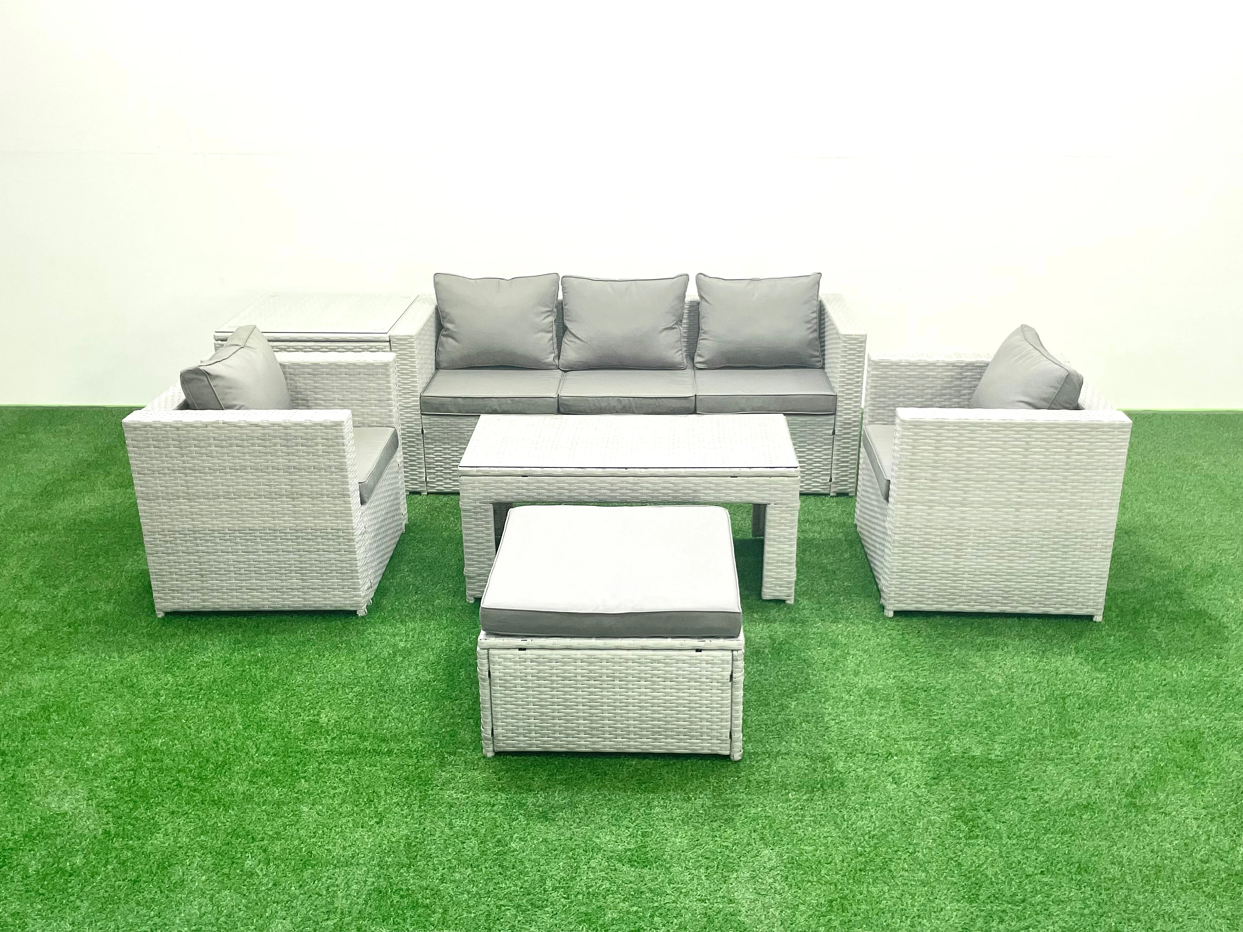 Salon de jardin 6 Pièces Canapé de jardin Table basse oblongue avec 2 Chaises Side Tabe Stool Gris clair mixte