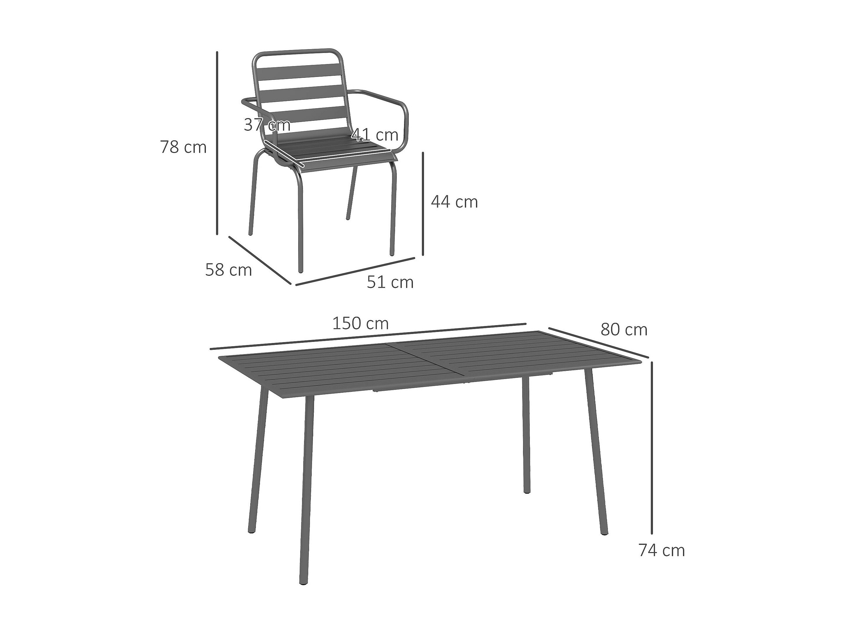 Salon de jardin 6 places 7 pièces - table à manger 6 chaises empilables - acier thermolaqué gris