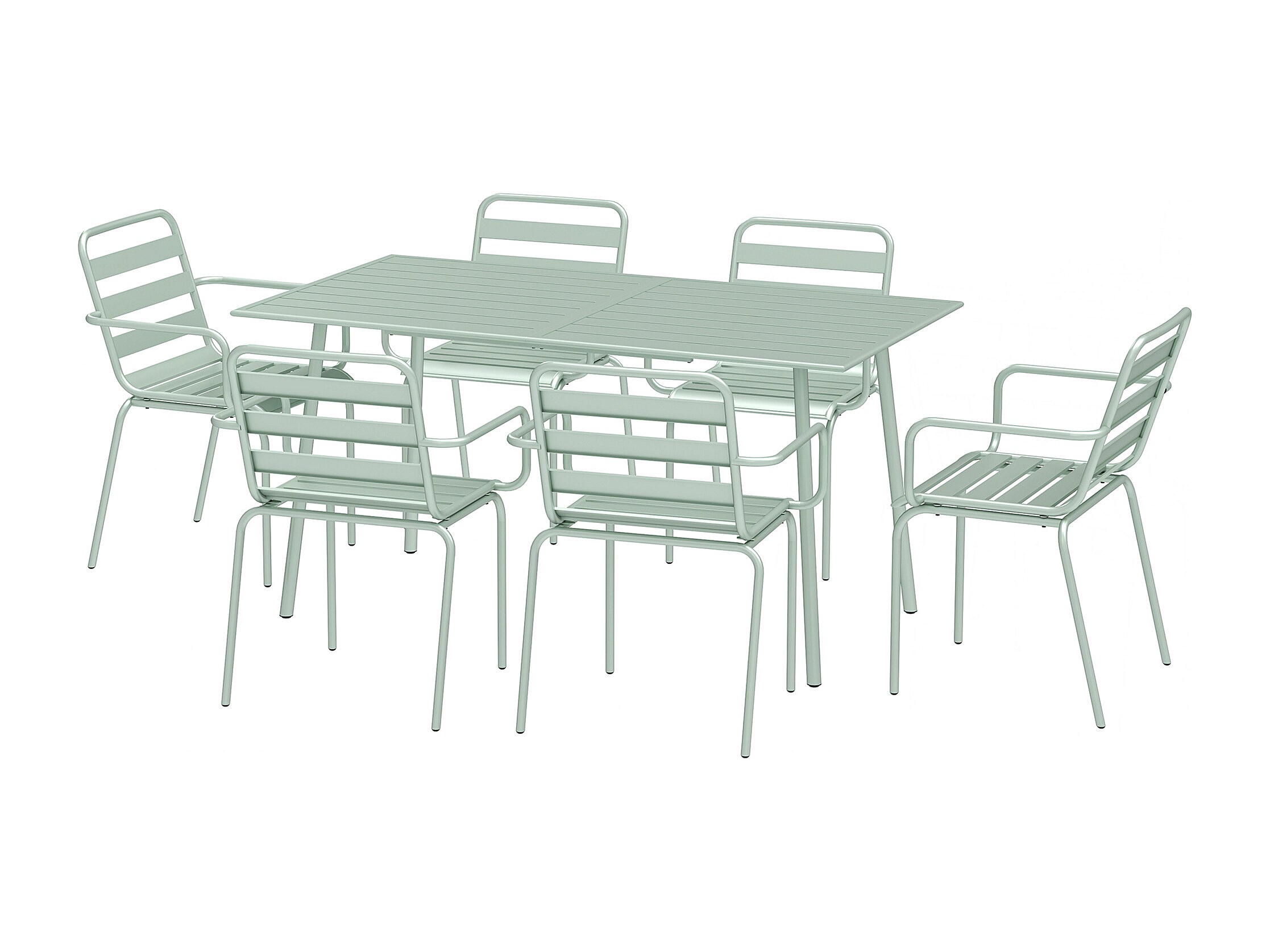 Salon de jardin 6 places 7 pièces - table à manger 6 chaises empilables - acier thermolaqué verre d'eau