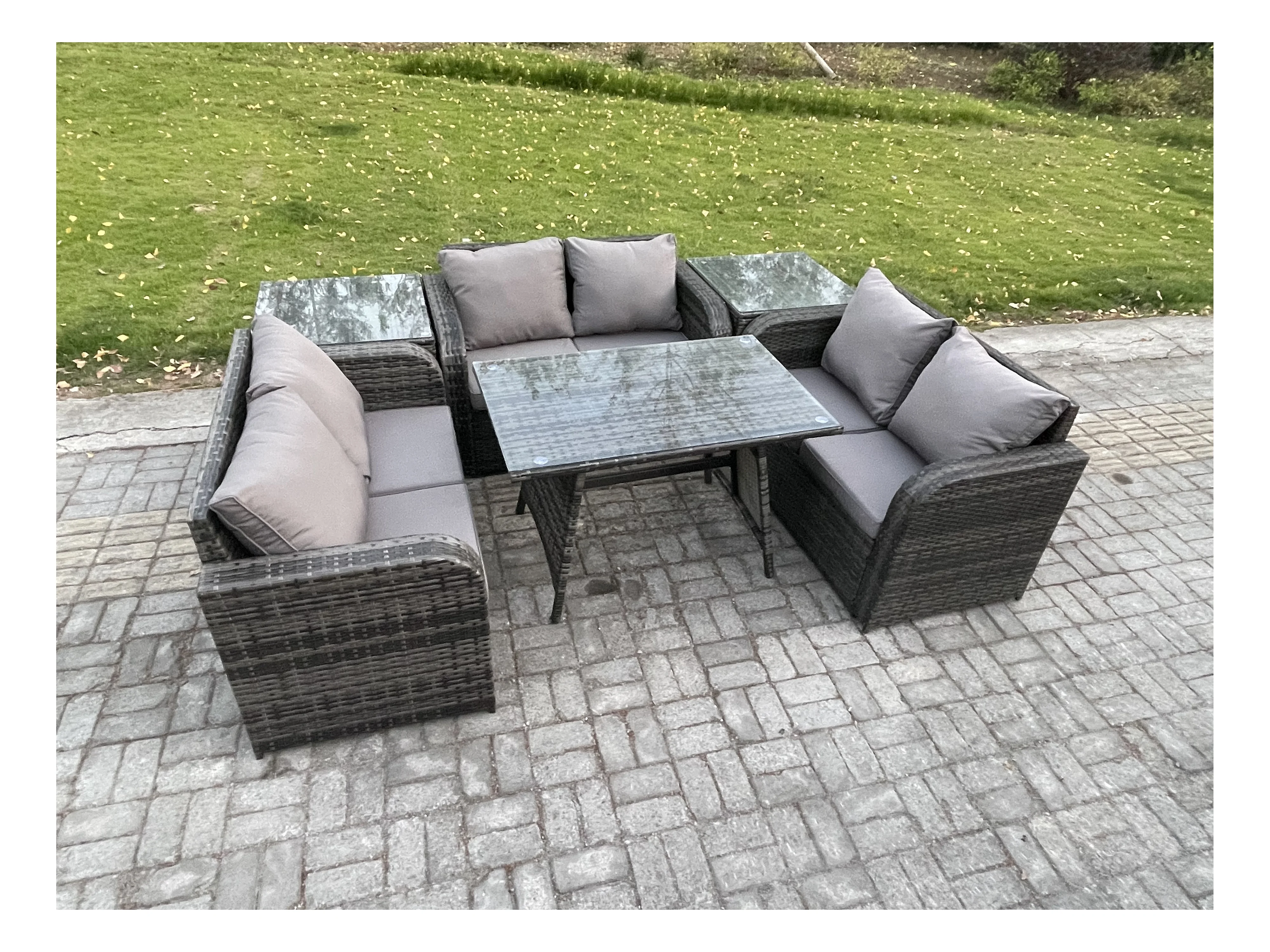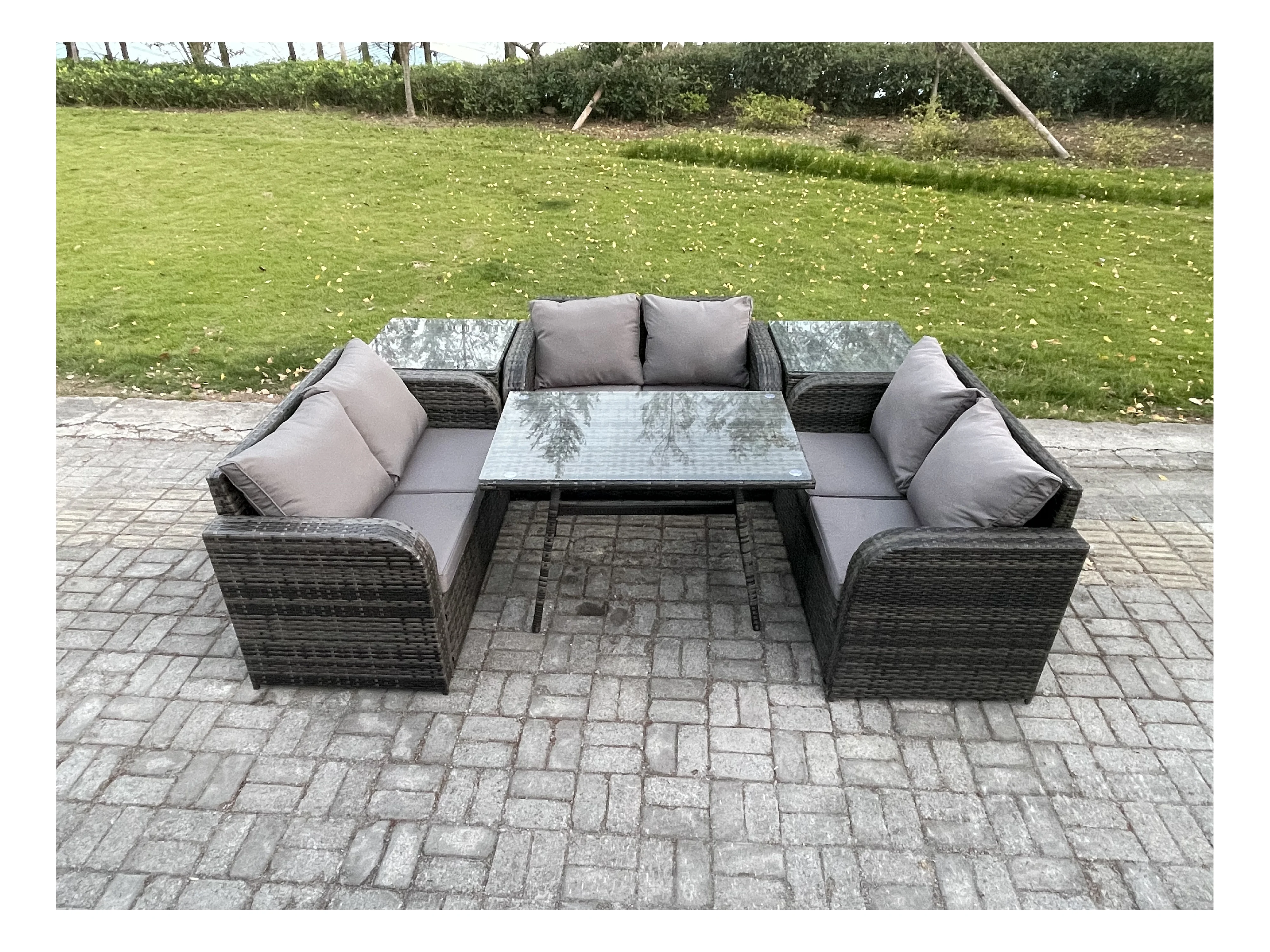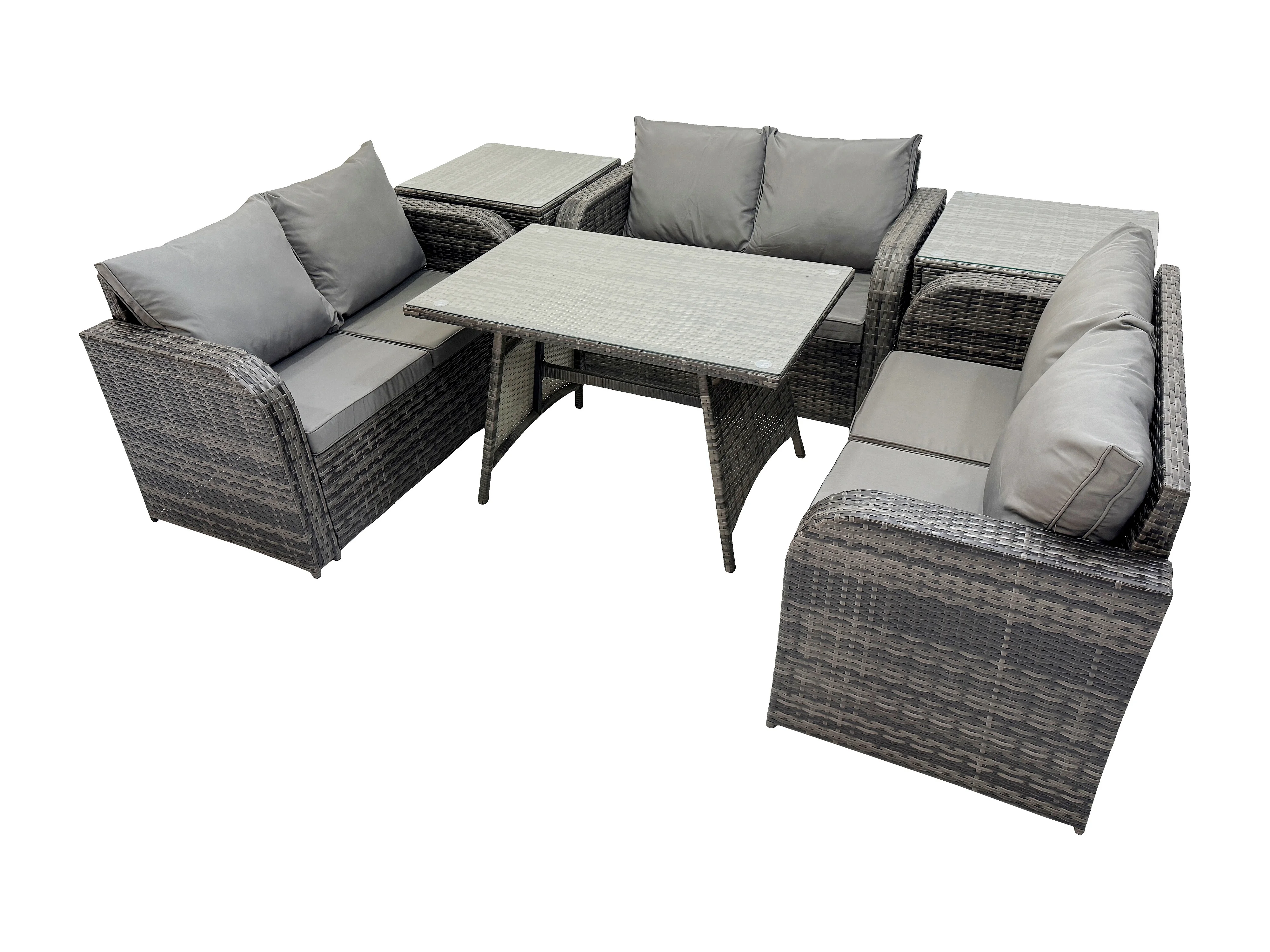Salon de jardin 6 places avec Canapé d'amour Table à manger rectangulaire 2 Tables d'appoint Gris foncé mixte