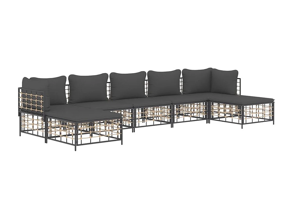Salon de jardin 7 pcs avec coussins anthracite résine tressée