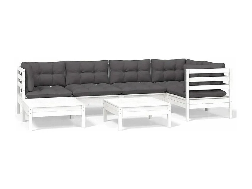 Salon de jardin 7 pcs avec coussins blanc bois de pin massif