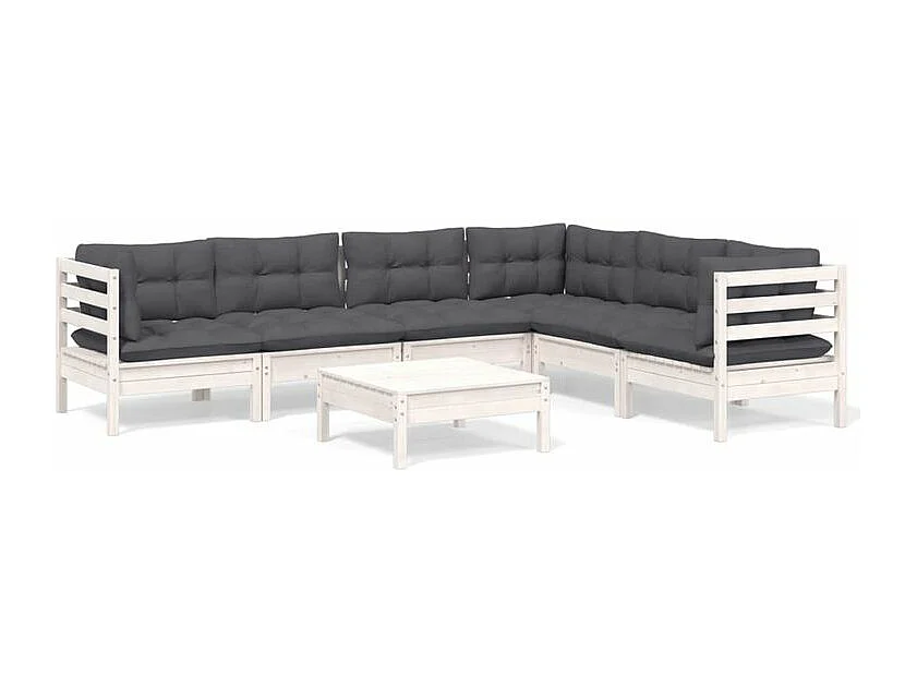 Salon de jardin 7 pcs avec coussins blanc bois de pin solide