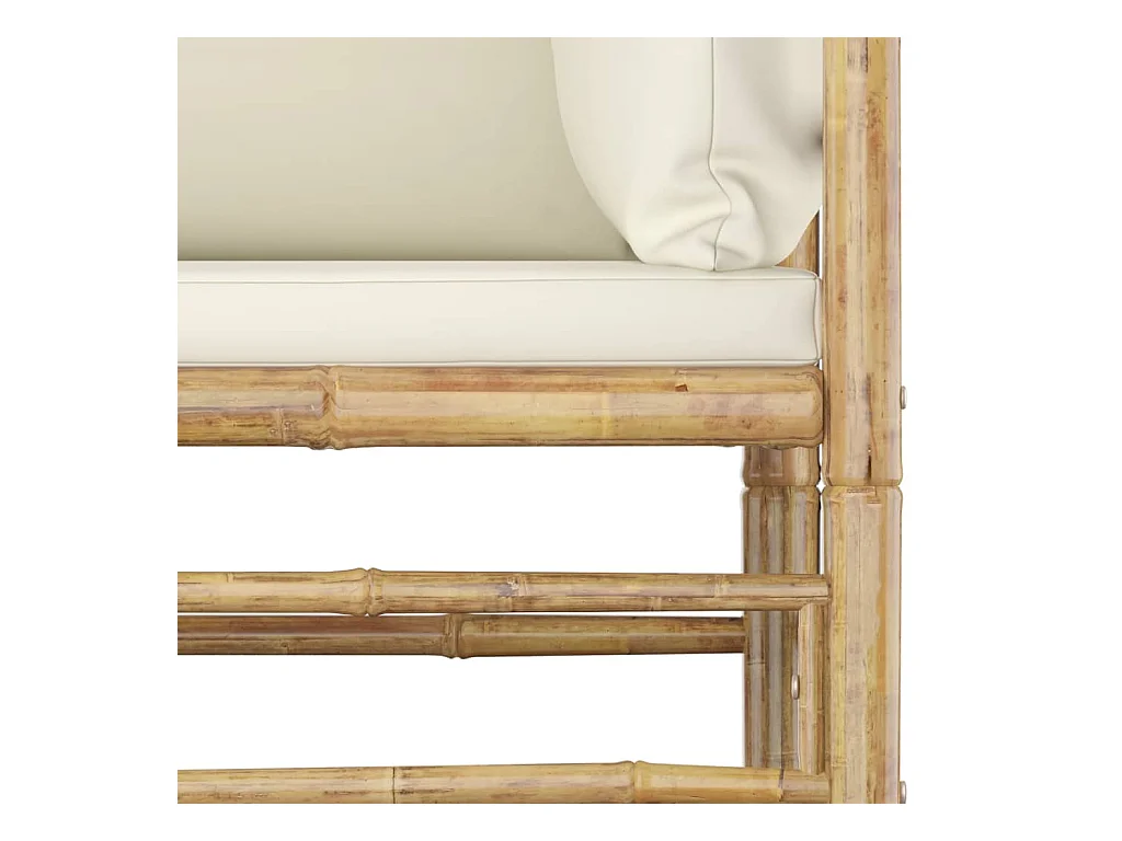 Salon de jardin 7 pcs avec coussins blanc crème Bambou