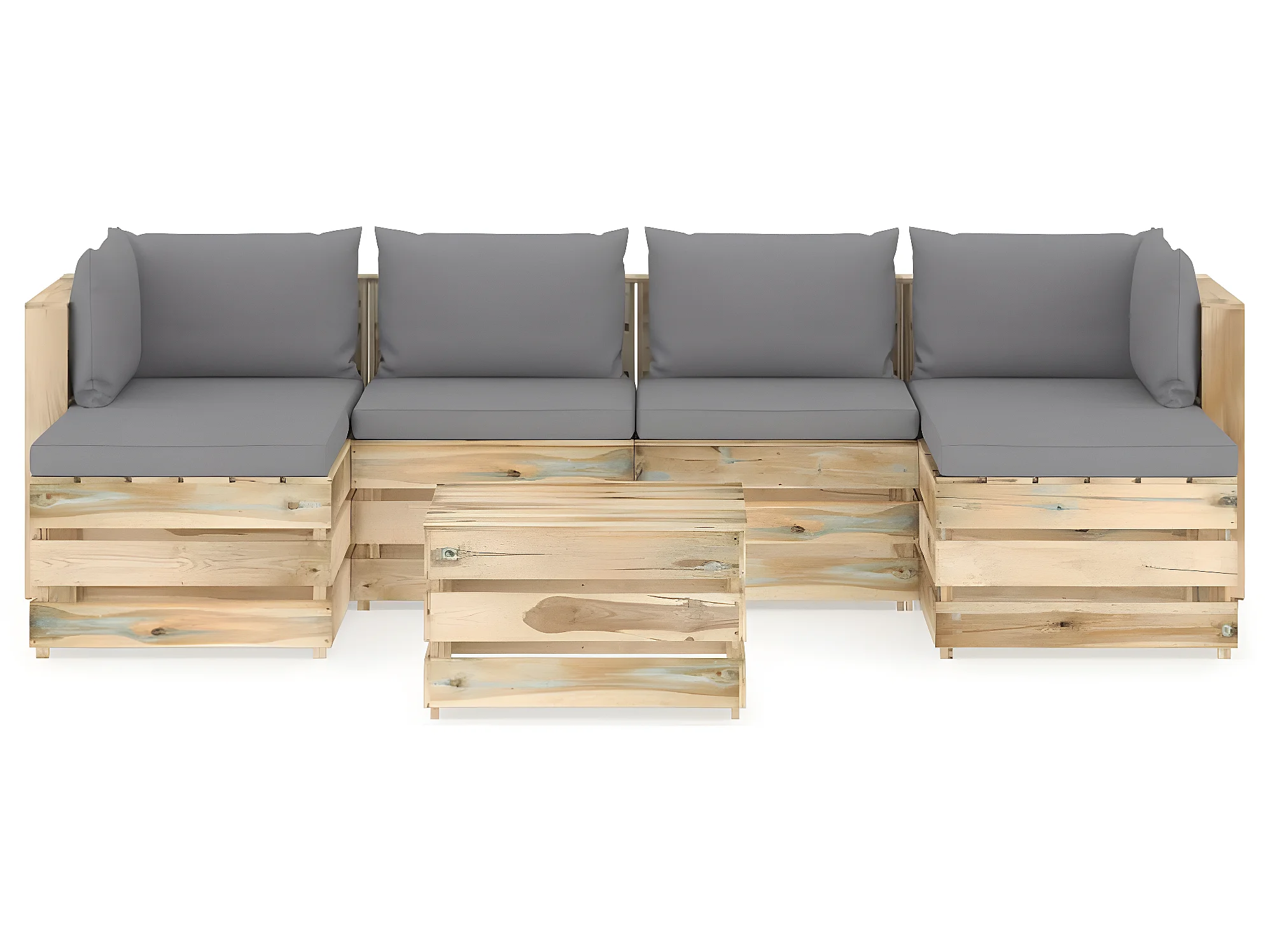 Salon de jardin 7 pcs avec coussins Bois imprégné de vert