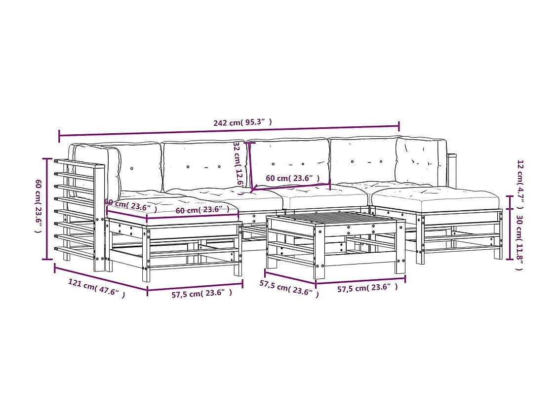 Salon de jardin 7 pcs avec coussins bois massif