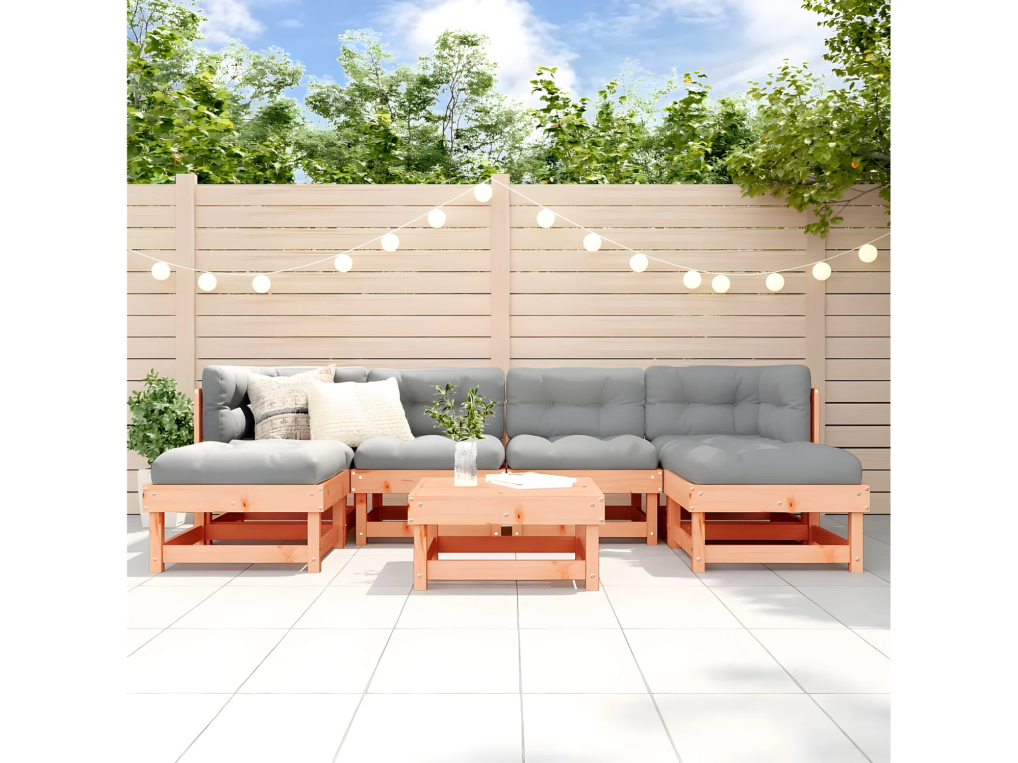 Salon de jardin 7 pcs avec coussins bois massif douglas