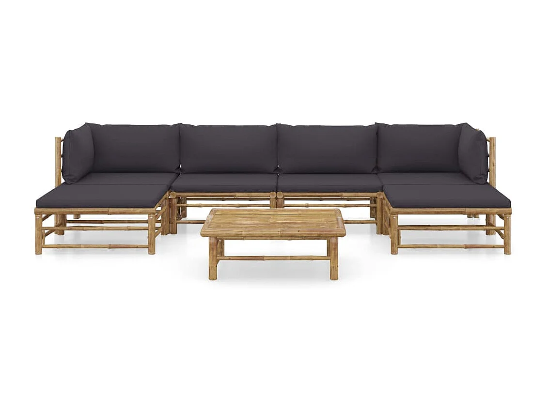 Salon de jardin 7 pcs avec coussins gris foncé Bambou 4