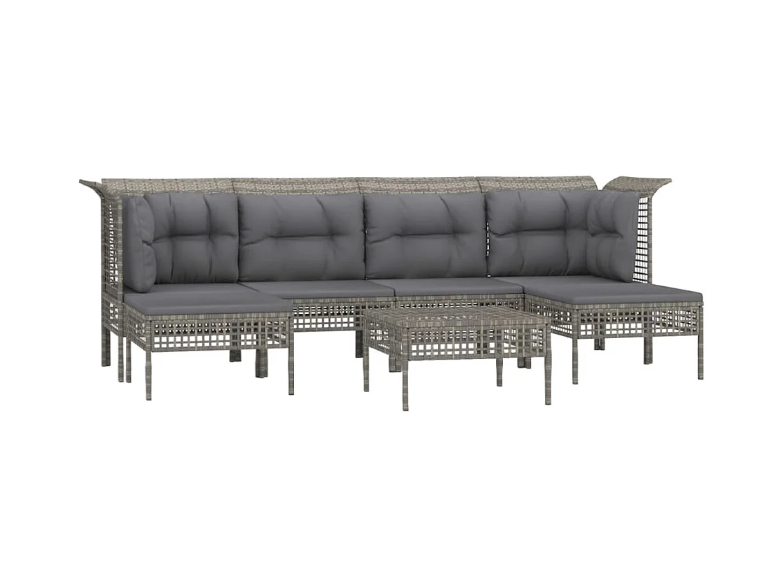 Salon de jardin 7 pcs avec coussins Gris Résine tressée